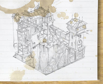 Markus built this mine to suggest complexity and volume, while fitting into a very finite place on the game grid.
